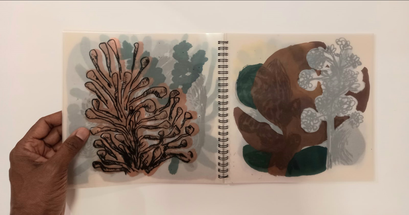 Esta exposição consiste em uma série de desenhos que se desdobram em combinações gráficas e cromáticas. São desenhos impressos em lâminas de aceto, sobrepondo-se em camadas gráficas com impressões digitais e cor aplicada com tinta acrílica. Composição de espaços internos e externos dos campos da memória e da observação. Nos campos da memória, o elemento de identificação se constrói nos aspectos lúdicos das formas e representações de sementes, folhagens, flores e frutos provenientes de uma paisagem afetiva da infância, entre outras narrativas inventadas. Pelos espaços da observação, o desenho e o gesto gráfico recombinam espacialidades de lugares, volumetrias e texturas das coisas, oferecendo consistência à composição das imagens que sobrevoam e se sobrepõem nas superfícies transparentes, opacas e/ou translúcidas dos suportes. O conjunto de trabalho desta série apresenta o exercício diário do desenho em sua condição de criar e recriar novos agrupamentos e arranjos desenhados. São novos encaminhamentos oriundos da série de desenhos e instalação Ramalhetes de desenhos, arranjos imaginários!